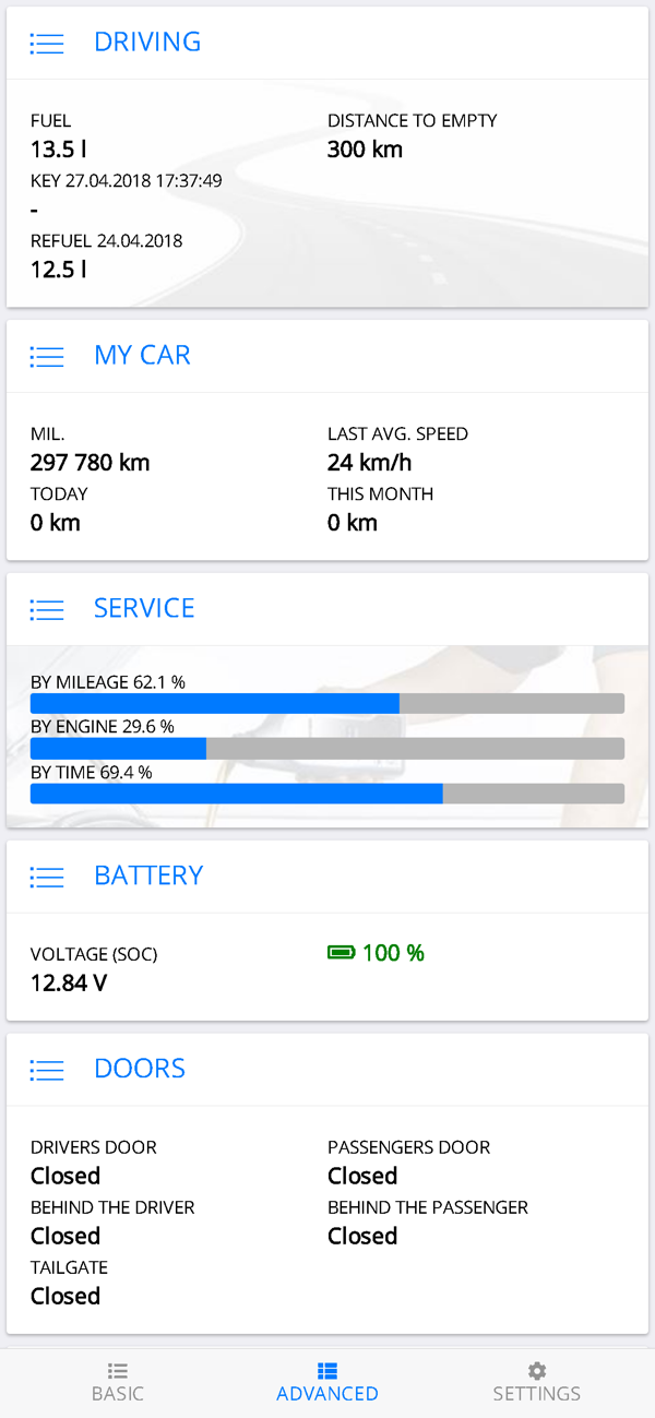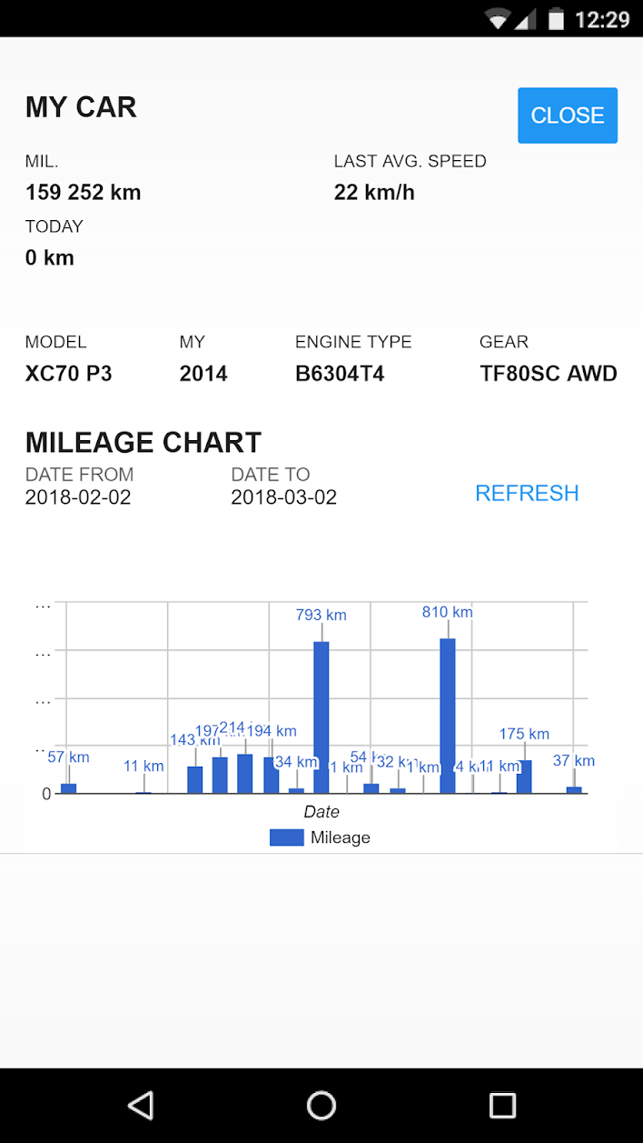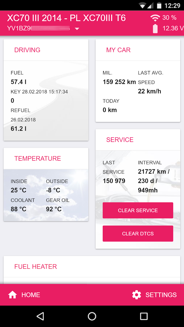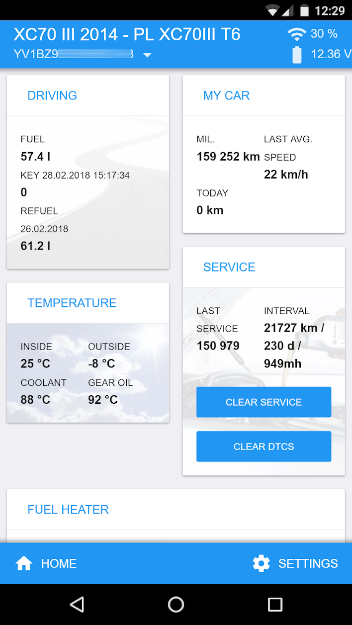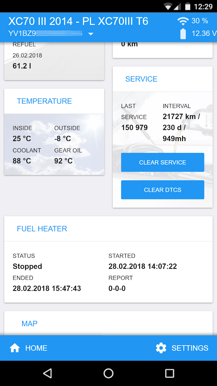 Application for remote controling Volvo cars. Service monitoring, remote controled additional functions (like starting fuel heater, air condition, ..). Remote assistance in case there's something wrong with the car or collision, log book and many other functions. Works in the whole Europe!